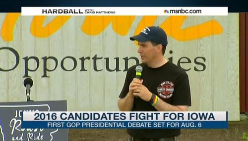 Doing a postmortem of the Jodi Ernst's inaugural "Roast and Ride" event this weekend in Iowa, MSNBC's Chris Matthews has positive things to say about Gov. Scott Walker (R-Wis.) as a strong contender for next January's caucuses in the Hawkeye State, namely that he had mixed it up with his network colleague Ed Schultz in the recall election and come out on top.