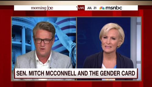 On the July 21 edition of Morning Joe, Mika Brzezinski went off on Mitch McConnell (R-KY) after the Senate Majority Leader claimed the gender card would not be enough for Hillary Clinton to win in 2016. The Morning Joe co-host was appalled that McConnell used the term “gender card” and explained: “[T]his is now sexist. It's just unfortunate. It's like those words you can't say, but some people…