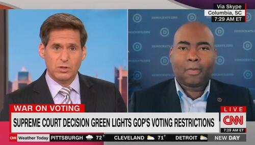On Friday morning, CNN was again acting as DNCTV as New Day co-host John Berman gave an unchallenged forum to DNC chairman Jaimie Harrison to complain about the U.S. Supreme Court ruling in favor of Republican-supported voting integrity measures, with Harrison hyperbolically invoking Jim Crow laws.