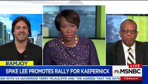 During Sunday's AM Joy on MSNBC, during discussions of the white racist rally in Charlottesville, Virginia, White House advisors were repeatedly referred to by panel members as "Nazis" or "white supremacists." And in one segment, as the group fretted over Colin Kaepernick's outcast status in the NFL, ESPN columnist William C. Rhoden oddly claimed that "a lot of players" in both the NFL and Major…