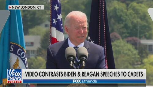 Joe Biden is borrowing lines from others again. On Wednesday, he spoke to the graduating class of the Coast Guard, botching a joke Ronald Reagan delivered flawlessly in 1988. After the attempted humor bombed, the current president mocked his audience as “dull” for not laughing at the joke. All three networks on Wednesday night and Thursday morning skipped Biden’s latest gaffe.