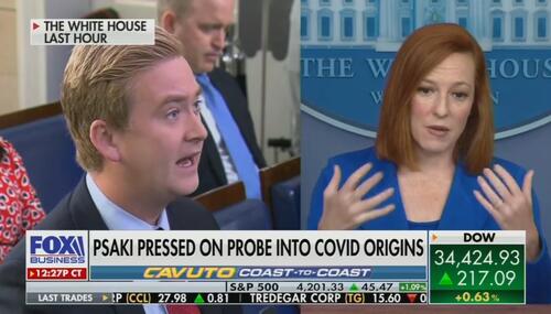 While Monday saw a change in the White House Briefing Room with an increase in capacity from about a dozen reporters to two dozen reporters, other aspects remained the same with Fox News’s Peter Doocy setting the tone in battling Press Secretary Jen Psaki over a bombshell Wall Street Journal story about a possible origin of the coronavirus.