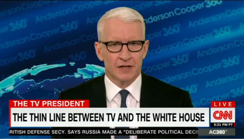 The depths of CNN’s righteous indignation and hypocrisy showed no bounds Thursday night, as AC 360 host Anderson Cooper and reporter Randi “Kush” Kaye extensively bemoaned how Trump was bringing friendly journalist into his administration. “It's a presidency that was essentially born on reality TV, and now the lines between reality and TV may be blurring even further,” Cooper opined regarding the…