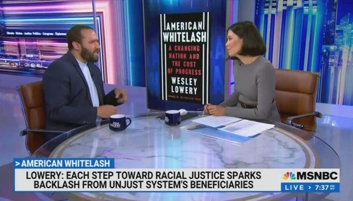 Pulitzer Prize-winning journalist and believer that everyone who disagrees with him is a racist Wesley Lowery took his American Whitelash book tour to MSNBC’s Alex Wagner Tonight on Tuesday to promote the idea that the founding of the country set up a “racialized caste system.”