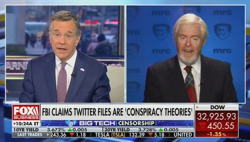 Locked and loaded Thursday morning on the Fox Business Network’s Varney & Co., Media Research Center Founder and President Brent Bozell told fill-in host David Asman that the FBI “knowingly” lied and peddled “disinformation” in a statement smearing the Twitter Files with it having been “none of [their] damn” business to suppress the New York Post’s Hunter Biden reporting…
