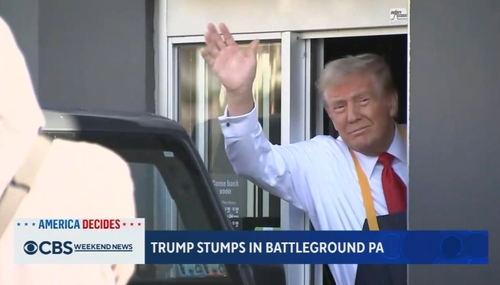 In keeping with an earlier promise, former President Donald Trump visited a Pennsylvania McDonald’s for a 15-minute shift at the fry station and drive-through. The CBS Evening News came unglued.