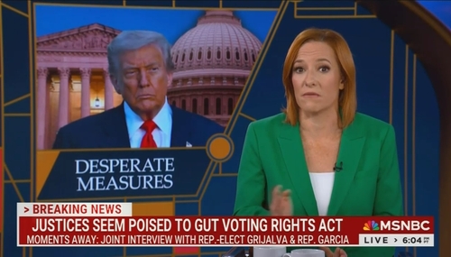 MSNBC’s Jen Psaki delivered a factually challenged monologue on Wednesday’s The Briefing. As Psaki tells it, if the Supreme Court rules that race-based gerrymandering in the form of majority-black districts is unconstitutional, it will be helping Republicans “rig” elections by allowing them to racially gerrymander themselves 19 additional House seats. Of course, that makes zero sense…
