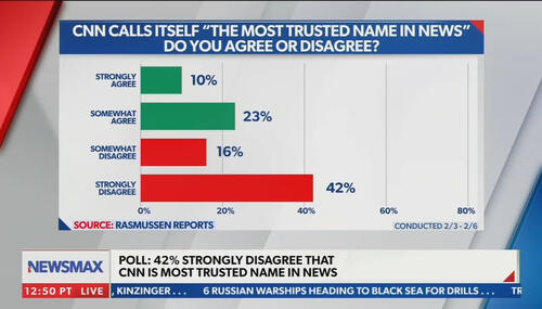 On Tuesday, CNSNews Blog Editor Craig Bannister reported: “CNN has long claimed to be ‘The Most Trusted Name in News’ – but, a strong majority of voters say it’s not, a new Rasmussen survey reveals.” He explained: “The national survey of 1,000 U.S. likely voters, conducted February 3 and 6, 2022, finds that 58% disagree with the network’s boast.”