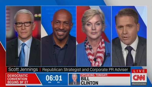 It’s nice that CNN still occasionally allows a real conservative analyst to make trouble on the set. Joseph Wulfsohn at Fox News reported that five minutes before the DNC-VCR segment of Tuesday night’s coverage kicked in, CNN analyst Scott Jennings caused a disturbance by asking why Democrats have never canceled Bill Clinton from appearing in the #MeToo era.