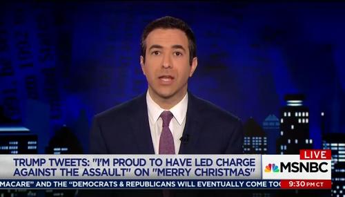 On Tuesday's The Last Word with Lawrence O'Donnell on MSNBC, substitute host Ari Melber suggested that conservatives who are concerned about there being a "war on Christmas" are either motivated by "ignorance" or by anti-Semitism as he fretted over President Donald Trump speaking on the subject.