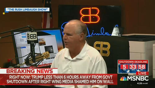 Seeing as how he had been the bane of the liberal media’s existence for the last 24 hours plus as he’s supposedly the real president, conservative talk radio host Rush Limbaugh was in an ebullient mood for his Friday show. He said that he was supposedly “the new villain in Washington D.C.” ahead of a possible government shutdown that was portrayed as if the world was “end[ing] even before…