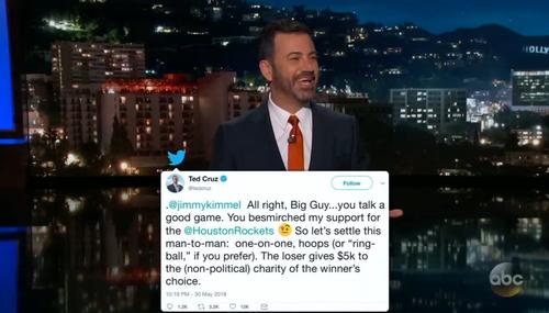 Jimmy Kimmel Takes Ted Cruz Challenge to Play One-on-One Hoops