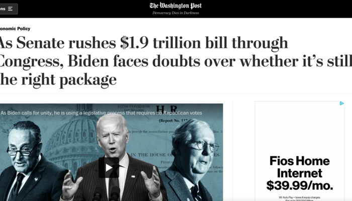 Recently, all three evening networks ignored reporting on a Feb. 1 Congressional Budget Office (CBO) report that shot down the notion that Biden’s $1.9 trillion stimulus was a necessity. The CBO report specifically stated that if “current laws governing federal taxes and spending (as of January 12) generally remain in place and that no significant additional emergency funding or aid is provided,” the economy will continue to strengthen "during the next five years."