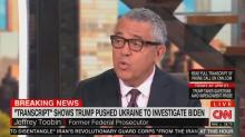 The release of the transcript of the much talked about phone call between President Trump and Ukrainian President Volodymyr Zelensky on Wednesday has led to a flurry of hot takes from the media about what exactly went on between the two presidents and the state of impeachment. CNN legal analyst Jeffrey Toobin joined At This Hour host Kate Bolduan to discuss the transcripts, his English speaking skills, and why he believes that there was a quid pro quo.