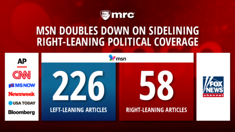 In response to MSN’s shenanigans, MRC Free Speech America Director Michael Morris said, “MSN’s anti-conservative bias is hiding in plain sight. It feigns balance by throwing in some articles from right-leaning outlets here and there, but the digital news gatekeeper still promoted nearly three times more left-leaning articles than right. It's time for digital news gatekeepers to commit to fair representation.”