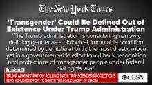 The New York Times remains appalled by the Trump administration’s stand for science when it comes to defining people in biological terms as either males or females. The news coverage was pitched to a panicky tone in the Times under headlines like, “At Rallies and Online, Transgender People Say They #WontBeErased" (who is "erasing" these people?) and “Anatomy Does Not Determine Gender, Experts Say.” (Which experts are these?)