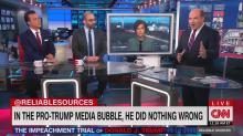 CNN is grasping at straws to explain away Americans waning interest in the impeachment trial. On Reliable Sources Sunday, host Brian Stelter and his CNN colleagues Oliver Darcy and John Avlon blamed it on the “Fox firewall” which apparently keeps the right ignorant of Democrat arguments. Besides dismissing conservatives as indoctrinated, the liberal panel also attacked the Trump administration was “flabby snowflakes” who were used to preferential media treatment.