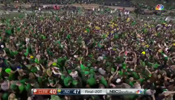 Hopefully, Saturday’s game won’t be seen as a super-spreader event, but the field-stormers at Notre Dame -- as well as the school administrators that allowed them into the stadium with no evident plan to stop them from crowding -- certainly seem to have done the best they can to create one.
