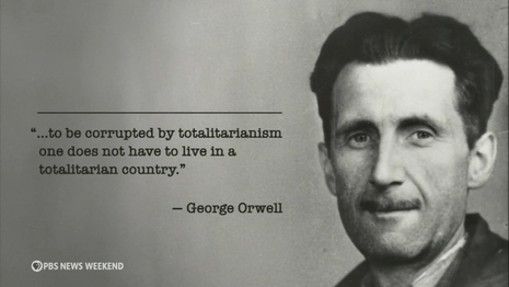 JOHN YANG: George Orwell's writings warning of the dangers of totalitarian and authoritarian states gave the English language the term Orwellian. A new documentary argues that Orwell’s greatest fears are coming true….