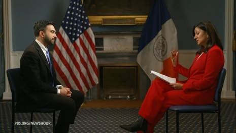Friday’s PBS News Hour featured a taped interview between co-anchor Amna Nawaz and New York City’s new mayor Zohran Mamdani. Would there be hard-hitting questions about Mamdani’s previous silence on anti-Semitism? His pro-Hamas, October 7 rape-denying wife? His ominous promise to “replace the frigidity of rugged individualism with the warmth of collectivism”? No chance. Instead, the interview was a conversation of cultural commiseration.