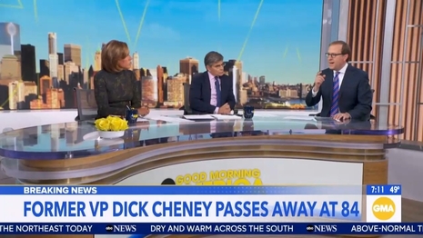 Before GMA, the bias had already begun on ABC with a brief, 72-second Special Report from Stephanopoulos, who used 19 seconds to emphasize the infamous quail hunting incident and Cheney’s opposition to Trump.