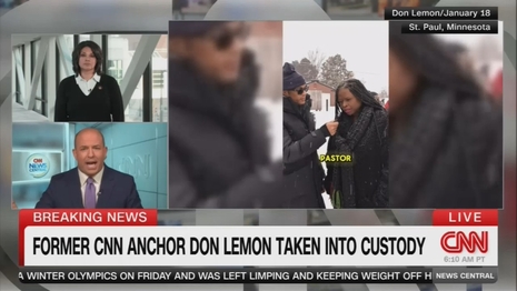 On Friday morning, CNN’s News Central and The Situation Room were in a state of anger and mourning over the “disturbing,” “heartbreaking,” “stark,” and “terrifying” arrest of their “friend” and former CNN colleague Don Lemon for his role in the January 18 storming of a St. Paul-area church and, according to the Justice Department, violating the First Amendment rights of congregants to worship freely as well as the Freedom of Access to Clinic Entrances (FACE) Act.