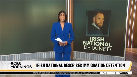 WATCH: Thursday’s ‘CBS Mornings’ had a full story expressing disgust that the Trump administration has detained and seeking to deport a man from Ireland who’s been here illegally for almost 20 years and touted as fact his claims that DHS holding facilities are like a “modern-day… pic.twitter.com/3Jgffhr6uM