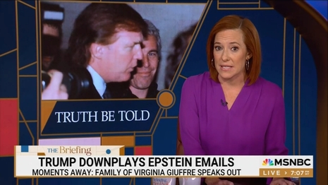 PSAKI: Now, again, the reason Karoline Leavitt and House Republicans were invoking and have been invoking Virginia Giuffre’s name is not to help tell her story or to push for releasing more documents like her family wants, but to try to cover Trump's butt.