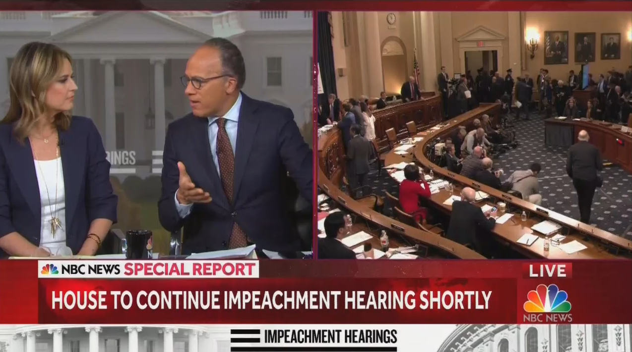 “Well, Gordon Sondland, clearly the man of the hour there, as we are halfway through the questioning,” Nightly News anchor Lester Holt declared during NBC’s special coverage. He further claimed that Sondland “dropped a lot of bombshells” and “Is now implicating the President directly.” He emphasized that Sondland “had direct communications with the President.”