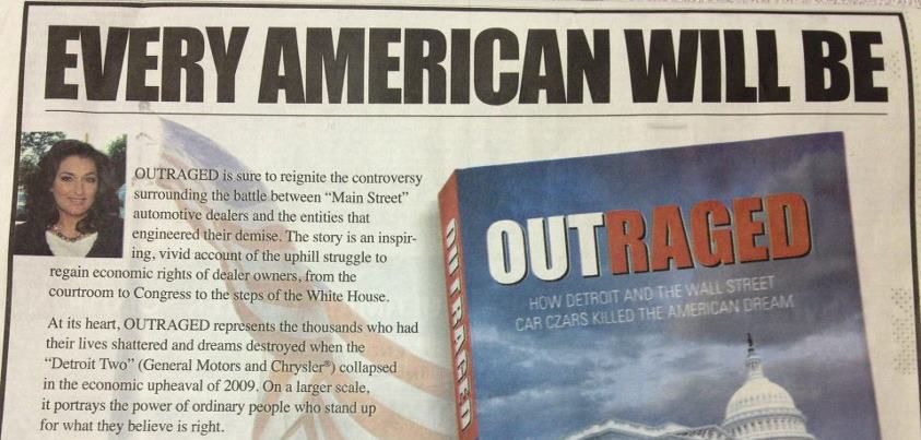 Someone has told the dealerships’ side of the story and, all too predictably, been met with media silence. Tamara Darvish, vice president of family-owned Maryland dealerships DARCARS, and automotive journalist Lillie Guyer, published “Outraged,” in 2011 to document how hundreds of small businesses lost everything in the bailout.