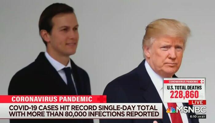 Scarborough was reacting to a clip of President Trump at a Pennsylvania rally saying that nobody had ever done as much as he has in his first three-and-a-half years in office. It is of course false and outrageous to accuse the president of having killed Americans who have died of COVID.