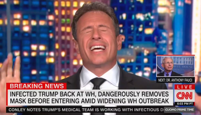 “That question was ignored,” Stelter chided, acting dumb to the fact the media would have attacked the President for spraying the virus all over the press if he had stopped to take questions. This was on display later in the evening when Trump took his mask off at the White House for a photo-op with no one anywhere close to him; the media still lost their minds.