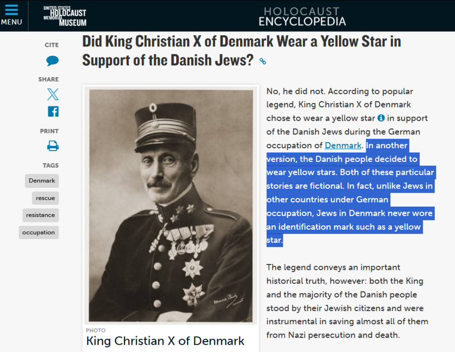 During the war, Norway was very much an ally of Nazi German and according to the Holocaust Museum, the Danish didn’t wear the star on masse either. “In another version, the Danish people decided to wear yellow stars. Both of these particular stories are fictional. In fact, unlike Jews in other countries under German occupation, Jews in Denmark never wore an identification mark such as a yellow star,” the museum wrote about Danish King Christian X and Denmark during the war.