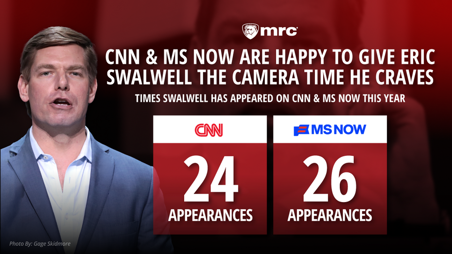 Given the new sexual misconduct allegations against disgraced Democratic Congressman and former California gubernatorial candidate Eric Swalwell, or at least the media deciding to finally act on what has been described as an “open secret,” the Media Research Center felt it was worth looking back at how often he was gifted a cable news appearance by the liberal outlets. According to a MRC study, between January 1 and April 10, Swalwell made 50 appearances on CNN and MS NOW.