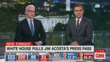 Just over an hour after CNN chief White House correspondent Jim Acosta had his White House credentials suspended in light of his latest act of showboating, AC360 gave him a hero’s welcome while CNN argued in a statement that “this unprecedented is a threat to our democracy” while Acosta asserted that “they’re trying to — to shut us down.”