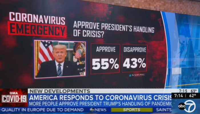 Neither of the two positive headlines were about Trump: “Reliable Fauci has everyone’s ear — even Trump’s” (March 21) and “Mnuchin emerges as able dealmaker in stimulus talks” (March 28).