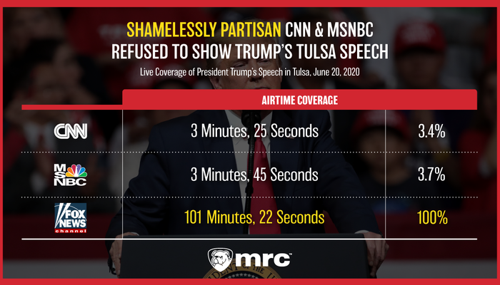 The evening newscasts also barely touched Biden’s racial gaffe in May (telling a radio host that if people can’t decide whether to vote for him or Trump “then you ain’t black”), giving it just three minutes, 16 seconds of airtime. That’s significantly less than the 13 minutes of coverage Biden received in 2019 for another racial gaffe, as he reminisced about the “civility” that allowed him to work with segregationist Senators James Eastland and Herman Talmadge in the 1970s.