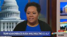 Things took a bizarre turn roughly ten minutes into Wednesday’s Hardball and, surprisingly, it wasn’t MSNBC host Chris Matthews. After discussing President Donald Trump’s feud with Denmark, the topic turned to Trump’s proposal to invite Russia back into the G-7 (making it the G-8) again when far-left PBS NewsHour correspondent Yamiche Alcindor appeared to take issue with Lee Greenwood’s God Bless the USA being played at Trump rallies.