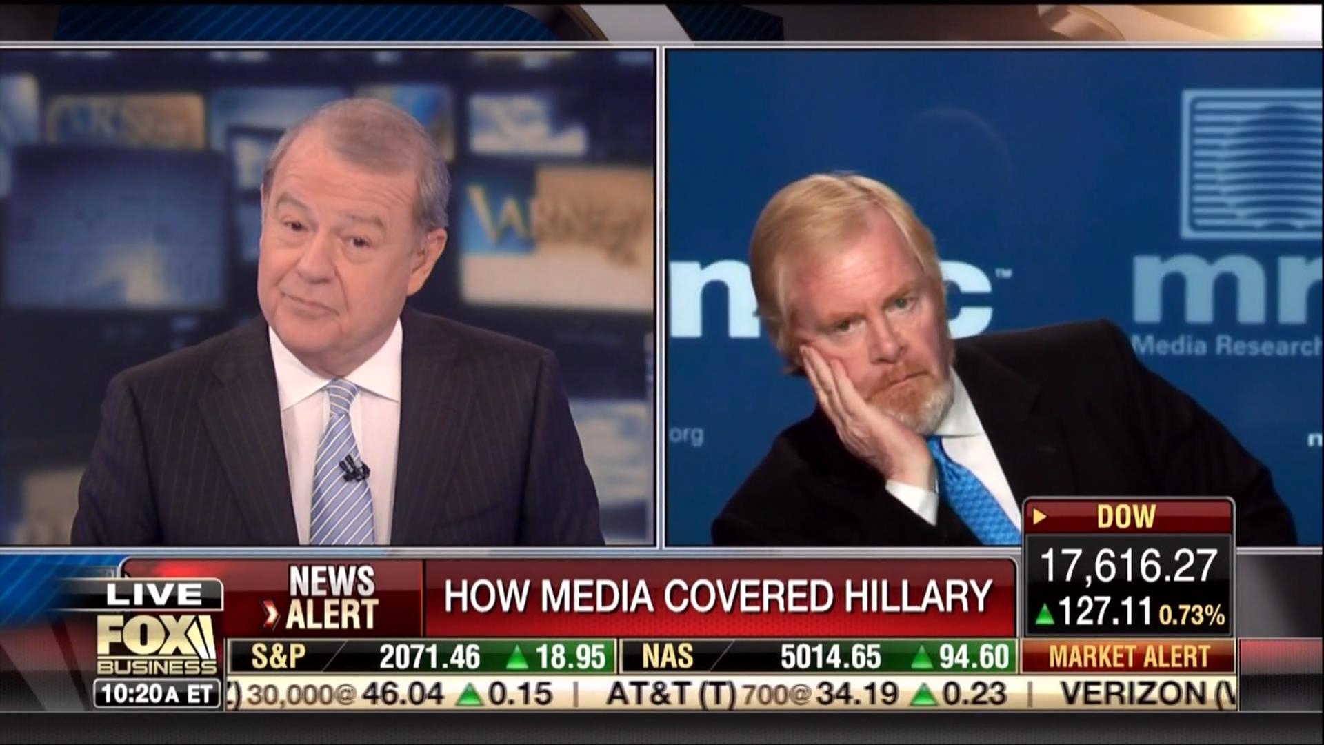 On Friday morning, Fox Business anchor Stuart Varney brought on MRC president Brent Bozell to discuss the overnight TV coverage of the big Benghazi hearing with Hillary Clinton. Varney began with examples of headline bias: