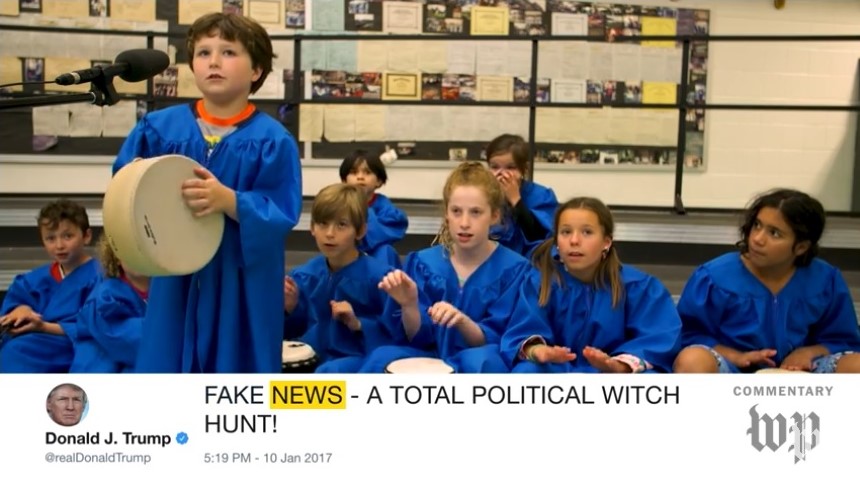The Washington Post is trying a new tactic to mock President Trump's tweets: they assembled a "Washington Post Kids Chorus" of grade-school kids to sing (or rap) actual Trump tweets.