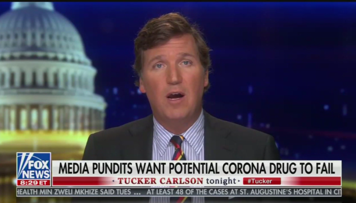 He then showed a montage of CNN talking heads denouncing the "miracle drug" that President Trump has touted as in most cases a much preferable option that needing to be intubated and put on a ventilator. Carlson concluded:
