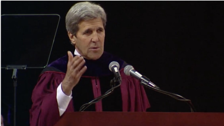 Based on the content of John Kerry's Friday commencement speech at Northeastern University, one might have expected that those in attendance threw away their passports after the event ended.