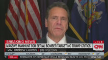 CNN opens its 6 AM New Day hour with Alisyn Camerota highlighting this Washington Post headline: "Amid Incendiary Rhetoric, Targets of Trump's Words Become Targets of Bombs." Then, under a Breaking News banner, CNN runs a clip of New York Gov. Andrew Cuomo [brother of CNN's Chris Cuomo] saying: "This is political terrorism. This is American terrorism. This is red versus blue terrorism."