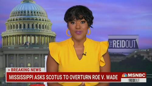 Filling in on Friday's The ReidOut on MSNBC, host Tiffany Cross led a one-sided discussion to decry Mississippi's effort to promote rights for unborn babies by trying to get the U.S. Supreme Court to overturn Roe v. Wade. Invoking the Hulu series The Handmaid's Tale, Cross derided Justice Amy Coney Barrett this way: "There's a real live handmaiden on the Supreme…
