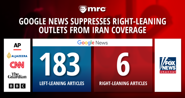 Google News all but excluded right-leaning news outlets from coverage of the U.S.-Israel war with Iran, with 183 left-leaning stories to just six right-leaning ones.