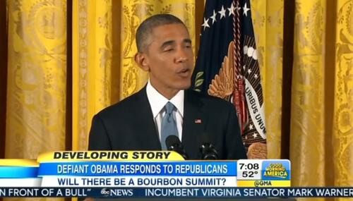 The journalists at Good Morning America on Thursday spun Barack Obama's post-midterm press conference as "taking his medicine," hyping a jokey response by the President about having a drink with Mitch McConnell. On Wednesday night's World News, Jon Karl highlighted Obama's confrontational style, noting, "But [the President] offered no sign that he has a mea culpa or a desire to change course. No…