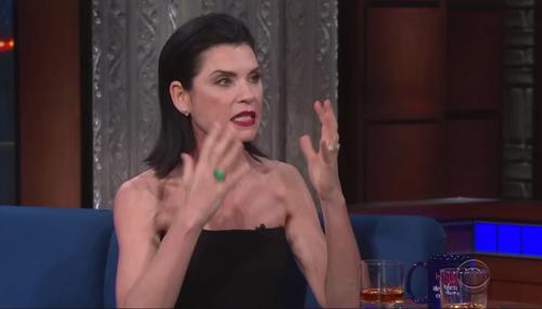 Actress Julianna Margulies (ER, The Good Wife) was on The Late Show Monday evening to promote her new television show, The Hot Zone, when liberal host Stephen Colbert sharply turned to politics. Margulies admitted that she had “gone insane” when Donald Trump was elected and started having nightmares of herself screaming at him in the Oval Office.
