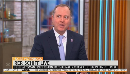 Following Monday’s softball interview with Senator Raphael Warnock, CBS Mornings brought in liberal media darling (and likely serial leaker) and Congressman Adam Schiff (D-CA) for a rhetorical foot massage over his work on the House Select Committee investigating the January 6 riot, pleading with him to run for Senate in 2024, and teeing him up to attack likely incoming House Speaker…