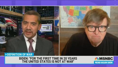 On Sunday night, far-left MSNBC host Mehdi Hasan joined far-left propagandist Michael Moore in lamenting that members of the George W. Bush administration were not convicted of war crimes. He also declared that the "defense" budget of the U.S. should be aimed at fighting "climate change" instead of military projects like helping to defend Israel with the Iron Dome missile defense system.