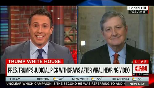 CNN anchor Chris Cuomo on Monday absolutely gushed over video of Louisiana Senator John Kennedy grilling one of Donald Trump’s judicial nominees. Cuomo hailed the Republican’s questions as “classic” and “wise.”